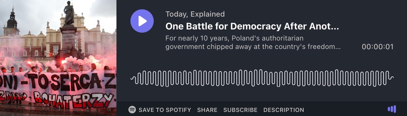 For Today, Explained, Jolie Myers and Noel King traveled to Poland to understand what happened when that country voted in an authoritarian government a decade ago. In the first episode, they look at Poland’s struggle against an authoritarian party and how, “against considerable odds, they booted out the authoritarians and got their democracy back.”